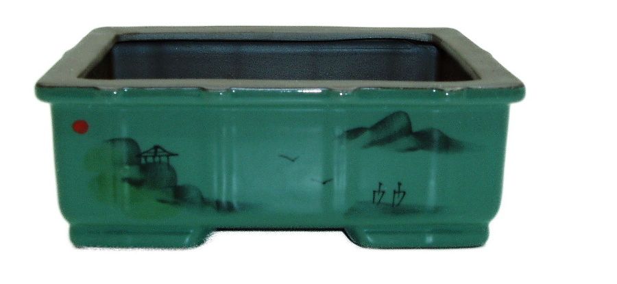 Keramická mrazuvzdorná miska na bonsaje o rozměru 16 x 12 x 6 cm. Bez podmisky. Barva zelená.
