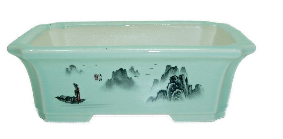 Keramická mrazuvzdorná miska na bonsaje o rozměru 18,5 x 12,5 x 6 cm. Bez podmisky. Barva mentolová.