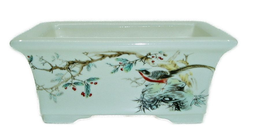 Keramická mrazuvzdorná miska na bonsaje o rozměru 14,5 x 11 x 6,5 cm. Bez podmisky. Barva bílá.