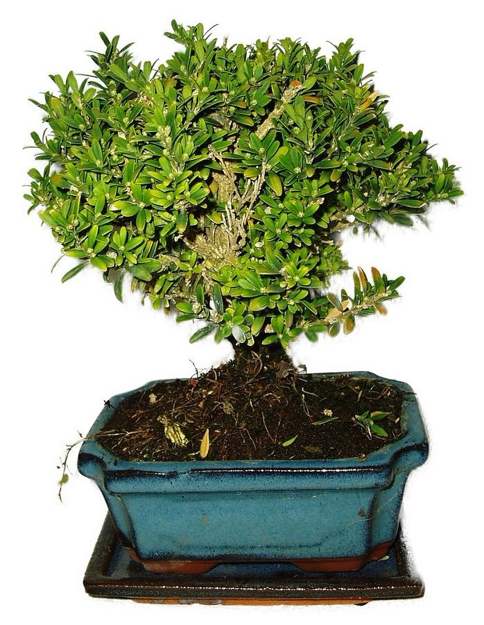 Buxus harlandi - korkový buxus - typický strom českých zahrad, dobře tvarovatelný. Bonsaj o výšce 23 cm a stáří bonsaje 6 let. Pokojová varianta buxusu.