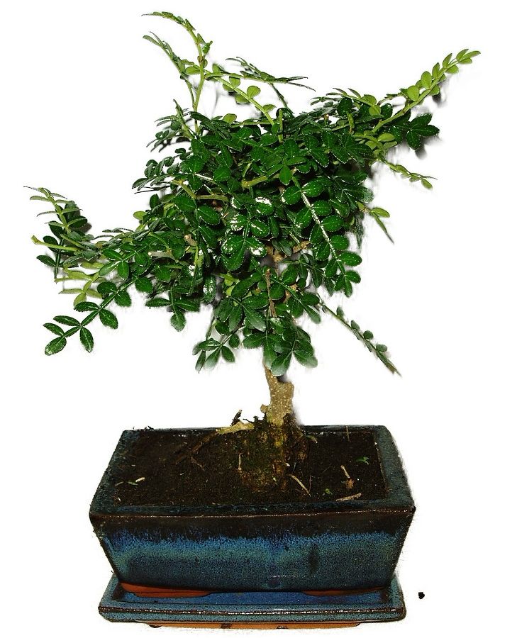 Caragona spinosa neboli čínský pepř je oblíbená bonsai, která má stálezelené lístečky a neopadává. Lístečky jsou krásně lesklé a bonsaje dokonce plodí černé bobule, které se pro svou štiplavou chuť využívají v čínské kuchyni a jsou označovány za stromy zdraví, či léčitelské. Bonsaje je lehce tvarovatelná, na nedostatečnou zálivku Vás upozorní svěšenými listy. Hnojíme pravidelně jednou za dva až tři týdny hnojivem na bonsaje. Čínské pepře jsou velmi hezké, dekorativní a oblíbené i svojí nenáročností. Rostou průměrně rychle, čili jednou za čas je zapotřebí zastřihnout. Pěstování bonsaje je opravdu nenáročné, postačí jim dostatek světla, přítmí, či tma jim nevyhovuje.