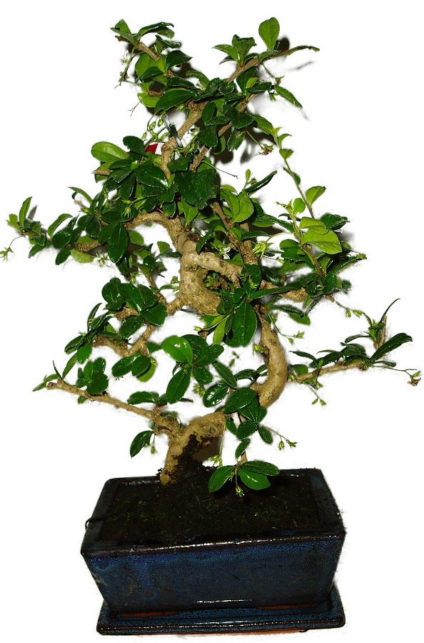 Velmi oblíbená bonsaje pro svoji nenáročnost, vzhled a hezké květy. Výborně tvarovatelná. Výška bonsaje 35 cm a stáří bonsaje 6 let.