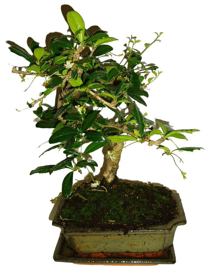 Velmi oblíbená bonsaje pro svoji nenáročnost, vzhled a hezké květy. Výborně tvarovatelná. Výška bonsaje 28 cm a stáří bonsaje 6 let.