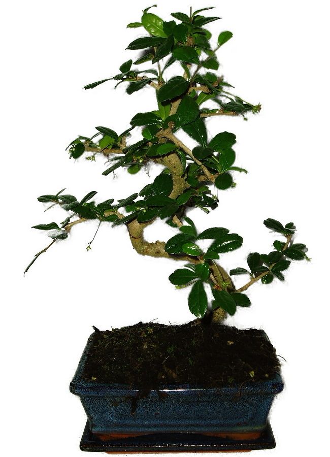 Velmi oblíbená bonsaje pro svoji nenáročnost, vzhled a hezké květy. Výborně tvarovatelná. Výška bonsaje 38 cm a stáří bonsaje 8 let.