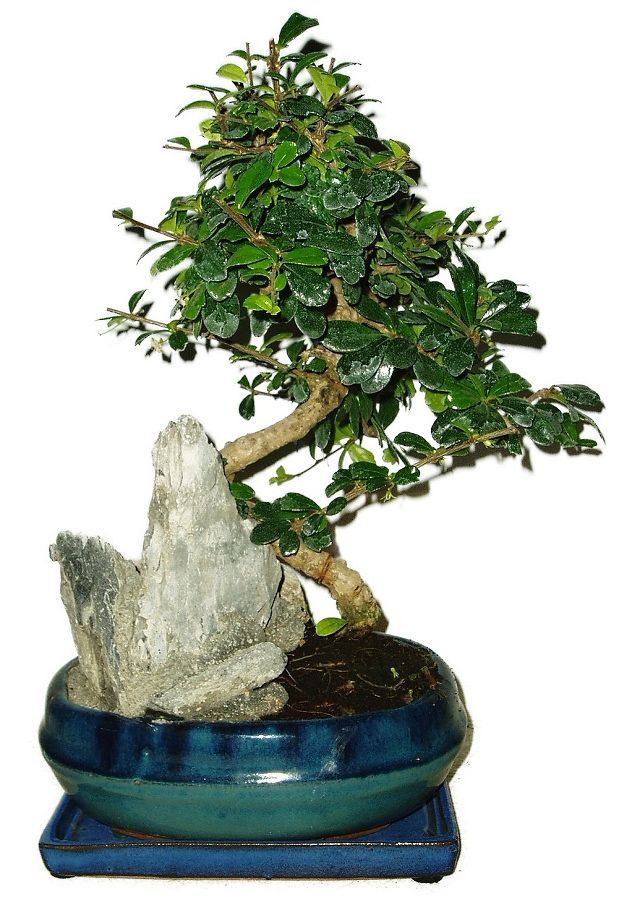 Velmi oblíbená bonsaje pro svoji nenáročnost, vzhled a hezké květy. Výborně tvarovatelná. Výška bonsaje 33 cm a stáří bonsaje 10 let.