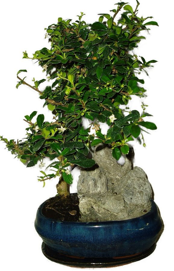 Velmi oblíbená bonsaje pro svoji nenáročnost, vzhled a hezké květy. Výborně tvarovatelná. Výška bonsaje 36 cm a stáří bonsaje 10 let.