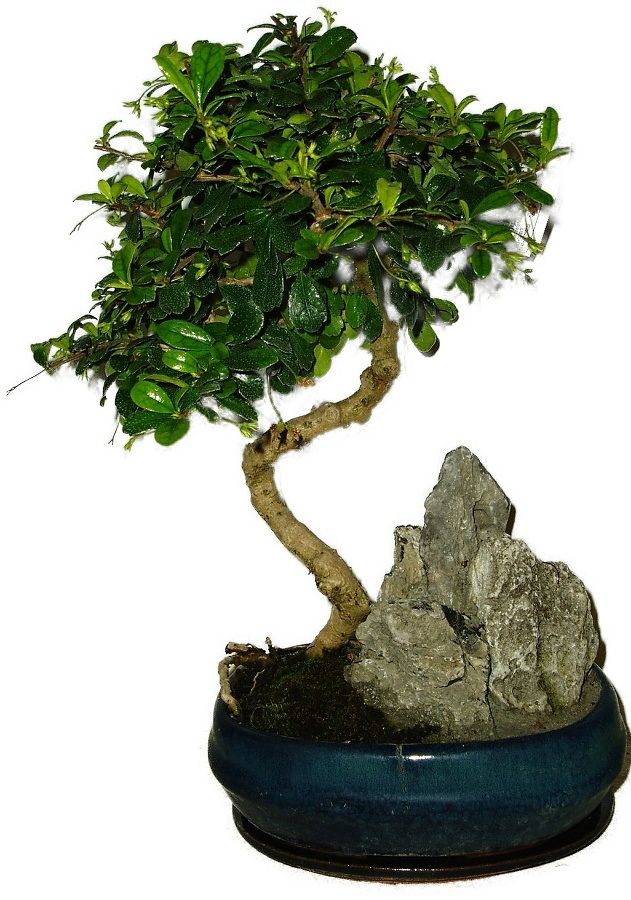 Velmi oblíbená bonsaje pro svoji nenáročnost, vzhled a hezké květy. Výborně tvarovatelná. Výška bonsaje 37 cm a stáří bonsaje 10 let.