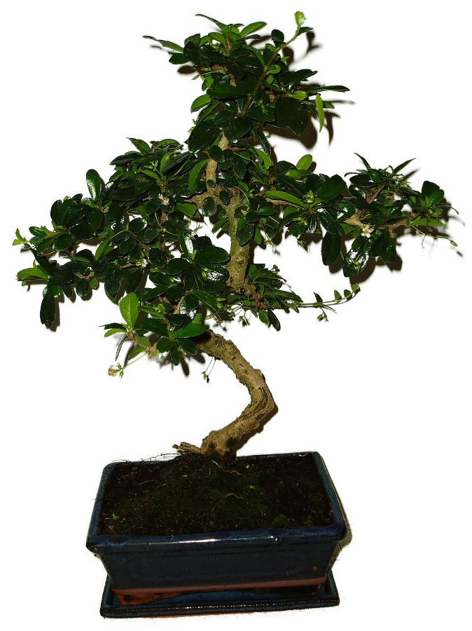 Velmi oblíbená bonsaje pro svoji nenáročnost, vzhled a hezké květy. Výborně tvarovatelná. Výška bonsaje 43 cm a stáří bonsaje 8 let.