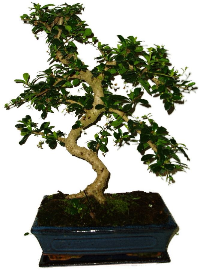 Velmi oblíbená bonsaje pro svoji nenáročnost, vzhled a hezké květy. Výborně tvarovatelná. Výška bonsaje 47 cm a stáří bonsaje 10 let.