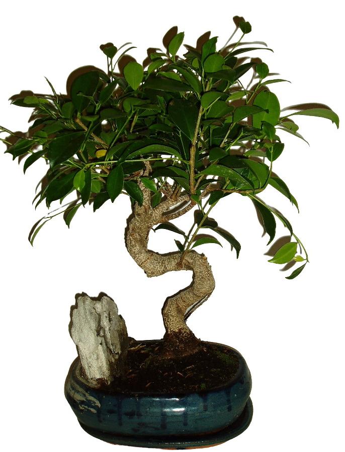 Ficus retusa - fíkovník je klasická pokojová bonsaje o výšce stromu 50 cm a stáří 10 let. Stačí jim polostín, či šero, pouze nesnáší průvan a studenou vodu.