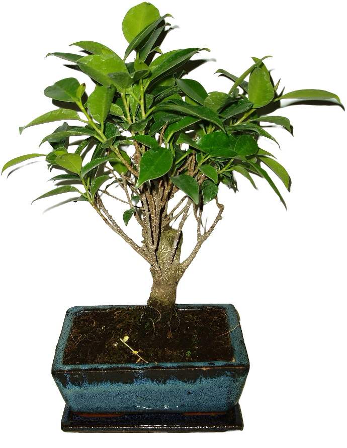 Ficus - fíkovník je naprosto nenáročná bonsaj, které nevadí i delší sucho, naopak ji vadí přelévání. Jediné co opravdu nesnáší a na co reaguje shozením listů, žloutnutím, opadáním (po kterém opět obroste) je studená voda a průvan. Bonsaj tedy zaléváme vlažnou až velmi teplou vodou a umisťujeme ji na místa, kde není zima, průvan apod. Bonsai roste průměrně rychle, čili občasné střihání. Naprosto skvěle se nové výhonky tvarují, takže dosáhnete opravdu jakéhokoliv tvaru za pomocí metod tvarování a tvarovacího drátu. Ficusů je několik typů, liší se obvykle svými lístky, jejich tlustotou a tvarem, avšak co do pěstování jsou všechny stejné. Zálivku tedy provádíme až po důkladném vyschnutí i několik dní.