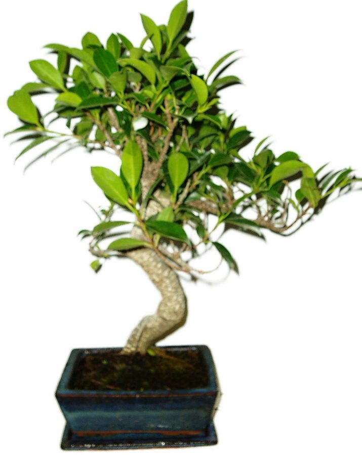 Ficus - fíkovník je naprosto nenáročná bonsaj, které nevadí i delší sucho, naopak ji vadí přelévání. Jediné co opravdu nesnáší a na co reaguje shozením listů, žloutnutím, opadáním (po kterém opět obroste) je studená voda a průvan. Bonsaj tedy zaléváme vlažnou až velmi teplou vodou a umisťujeme ji na místa, kde není zima, průvan apod. Bonsai roste průměrně rychle, čili občasné střihání. Naprosto skvěle se nové výhonky tvarují, takže dosáhnete opravdu jakéhokoliv tvaru za pomocí metod tvarování a tvarovacího drátu. Ficusů je několik typů, liší se obvykle svými lístky, jejich tlustotou a tvarem, avšak co do pěstování jsou všechny stejné. Zálivku tedy provádíme až po důkladném vyschnutí i několik dní.