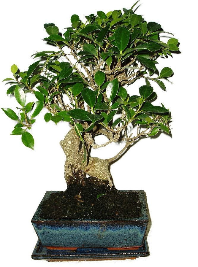Ficus retusa - fíkovník je klasická pokojová bonsaje o výšce stromu 36 cm a stáří 8 let. Stačí jim polostín, či šero, pouze nesnáší průvan a studenou vodu.