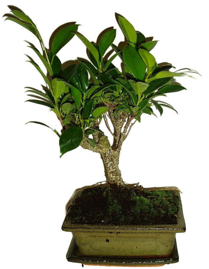 Ficus - fíkovník je naprosto nenáročná bonsaj, které nevadí i delší sucho, naopak ji vadí přelévání. Jediné co opravdu nesnáší a na co reaguje shozením listů, žloutnutím, opadáním (po kterém opět obroste) je studená voda a průvan. Bonsaj tedy zaléváme vlažnou až velmi teplou vodou a umisťujeme ji na místa, kde není zima, průvan apod. Bonsai roste průměrně rychle, čili občasné střihání. Naprosto skvěle se nové výhonky tvarují, takže dosáhnete opravdu jakéhokoliv tvaru za pomocí metod tvarování a tvarovacího drátu. Ficusů je několik typů, liší se obvykle svými lístky, jejich tlustotou a tvarem, avšak co do pěstování jsou všechny stejné. Zálivku tedy provádíme až po důkladném vyschnutí i několik dní.