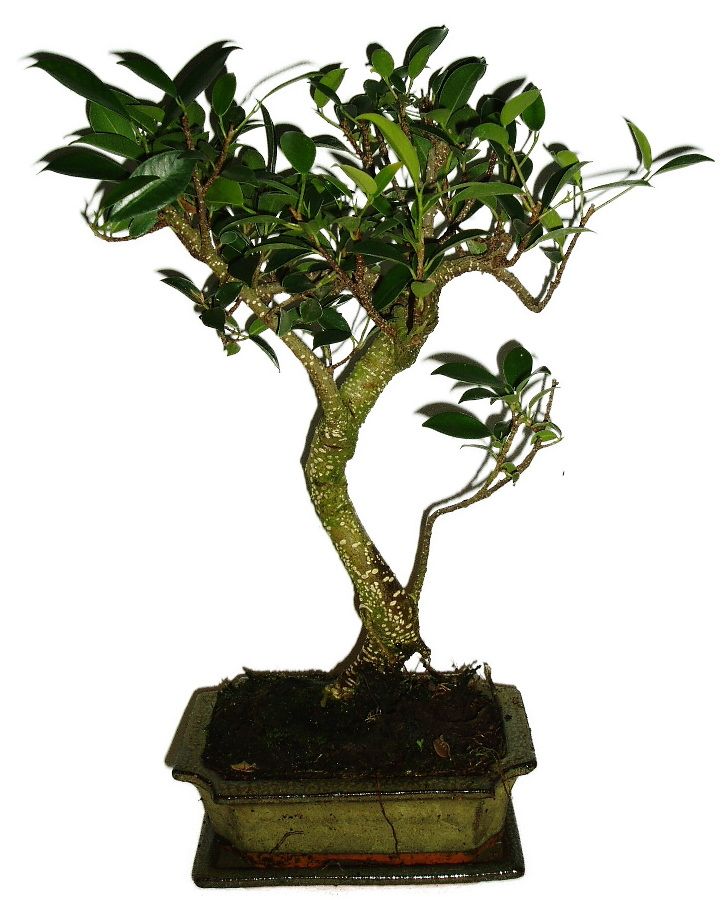 Ficus - fíkovník je naprosto nenáročná bonsaj, které nevadí i delší sucho, naopak ji vadí přelévání. Jediné co opravdu nesnáší a na co reaguje shozením listů, žloutnutím, opadáním (po kterém opět obroste) je studená voda a průvan. Bonsaj tedy zaléváme vlažnou až velmi teplou vodou a umisťujeme ji na místa, kde není zima, průvan apod. Bonsai roste průměrně rychle, čili občasné střihání. Naprosto skvěle se nové výhonky tvarují, takže dosáhnete opravdu jakéhokoliv tvaru za pomocí metod tvarování a tvarovacího drátu. Ficusů je několik typů, liší se obvykle svými lístky, jejich tlustotou a tvarem, avšak co do pěstování jsou všechny stejné. Zálivku tedy provádíme až po důkladném vyschnutí i několik dní.