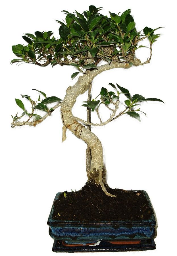 Ficus retusa - fíkovník je klasická pokojová bonsaje o výšce stromu 41 cm a stáří 8 let. Stačí jim polostín, či šero, pouze nesnáší průvan a studenou vodu.