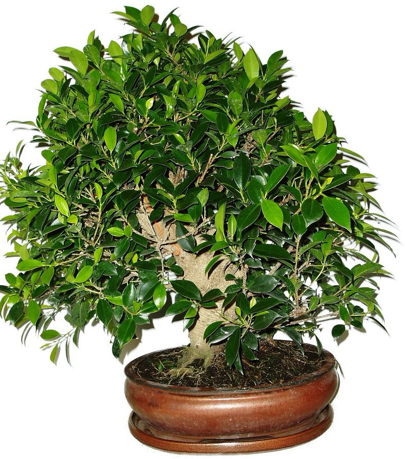 Ficus - fíkovník je naprosto nenáročná bonsaj, které nevadí i delší sucho, naopak ji vadí přelévání. Jediné co opravdu nesnáší a na co reaguje shozením listů, žloutnutím, opadáním (po kterém opět obroste) je studená voda a průvan. Bonsaj tedy zaléváme vlažnou až velmi teplou vodou a umisťujeme ji na místa, kde není zima, průvan apod. Bonsai roste průměrně rychle, čili občasné střihání. Naprosto skvěle se nové výhonky tvarují, takže dosáhnete opravdu jakéhokoliv tvaru za pomocí metod tvarování a tvarovacího drátu. Ficusů je několik typů, liší se obvykle svými lístky, jejich tlustotou a tvarem, avšak co do pěstování jsou všechny stejné. Zálivku tedy provádíme až po důkladném vyschnutí i několik dní.