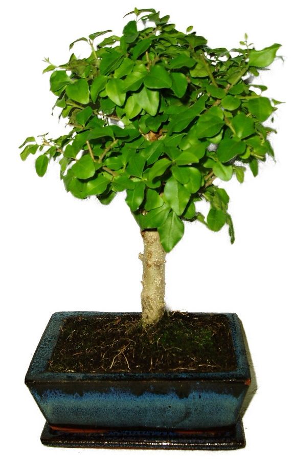 Bonsaj Ligustrum Chinensis, známá také jako ptačí zob čínský, je oblíbená pro své lesklé zelené listy a schopnost produkovat atraktivní bílé květy. Výška bonsaje 28 cm, stáří bonsaje 5 let.