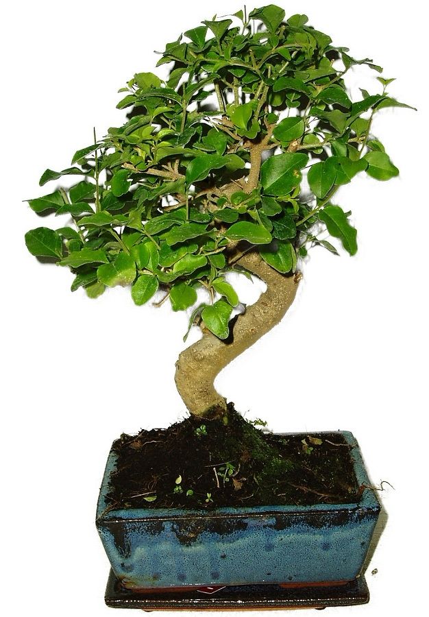 Bonsaj Ligustrum Chinensis, známá také jako ptačí zob čínský, je oblíbená pro své lesklé zelené listy a schopnost produkovat atraktivní bílé květy. Výška bonsaje 31 cm, stáří bonsaje 6 let.