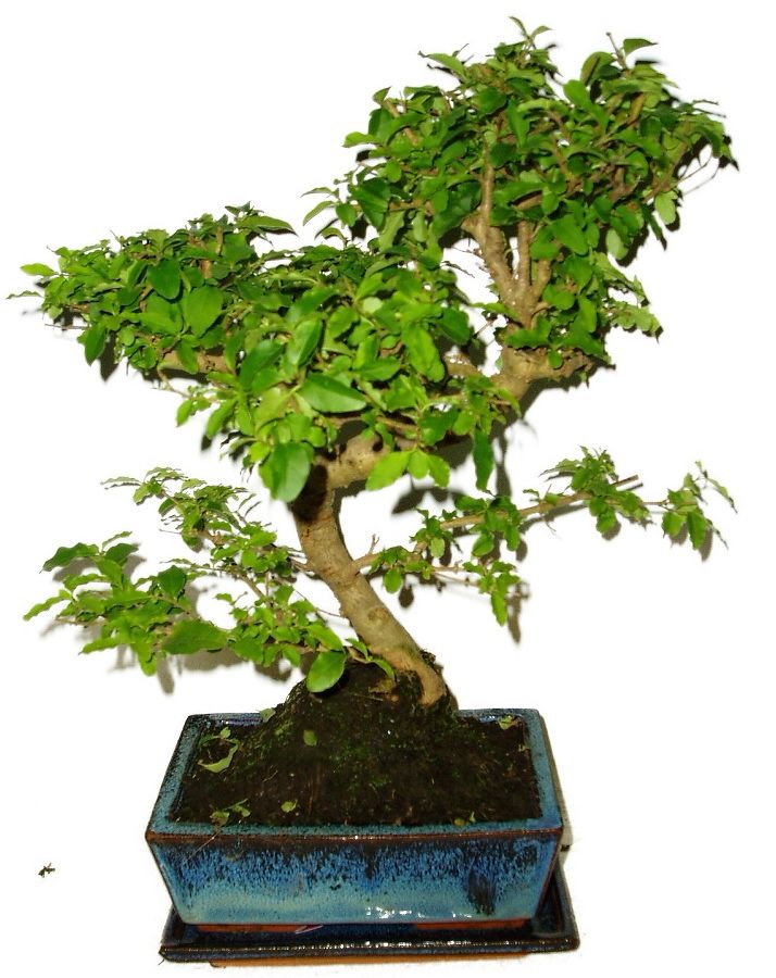Bonsaj Ligustrum Chinensis, známá také jako ptačí zob čínský, je oblíbená pro své lesklé zelené listy a schopnost produkovat atraktivní bílé květy. Výška bonsaje 37 cm, stáří bonsaje 8 let.