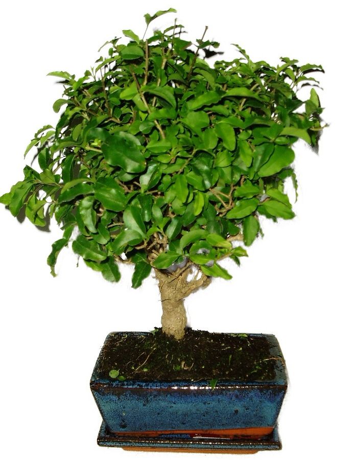 Bonsaj Ligustrum Chinensis, známá také jako ptačí zob čínský, je oblíbená pro své lesklé zelené listy a schopnost produkovat atraktivní bílé květy. Výška bonsaje 30 cm, stáří bonsaje 5 let.