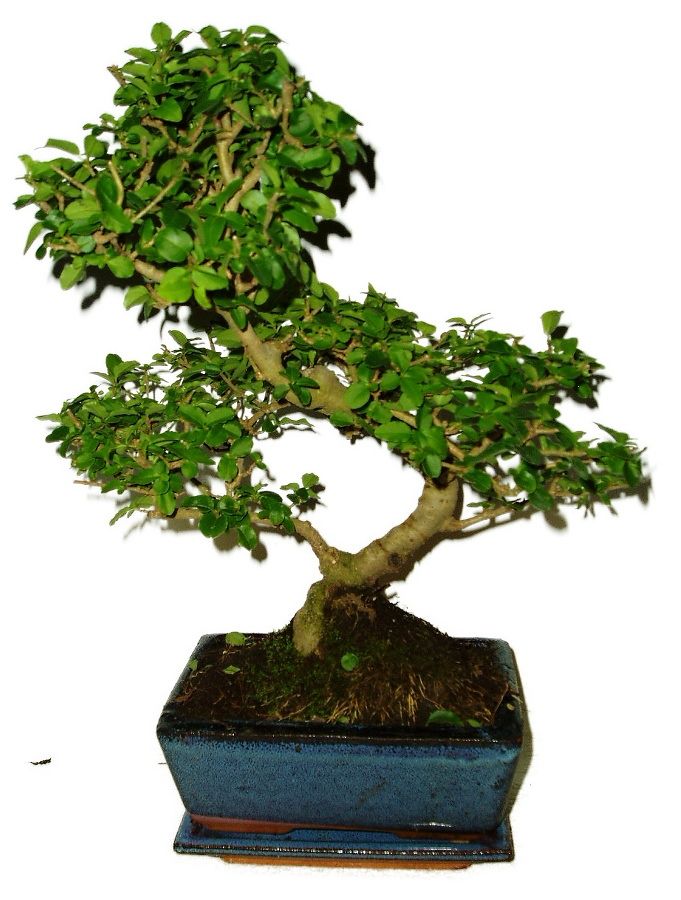 Bonsaj Ligustrum Chinensis, známá také jako ptačí zob čínský, je oblíbená pro své lesklé zelené listy a schopnost produkovat atraktivní bílé květy. Výška bonsaje 34 cm, stáří bonsaje 6 let.