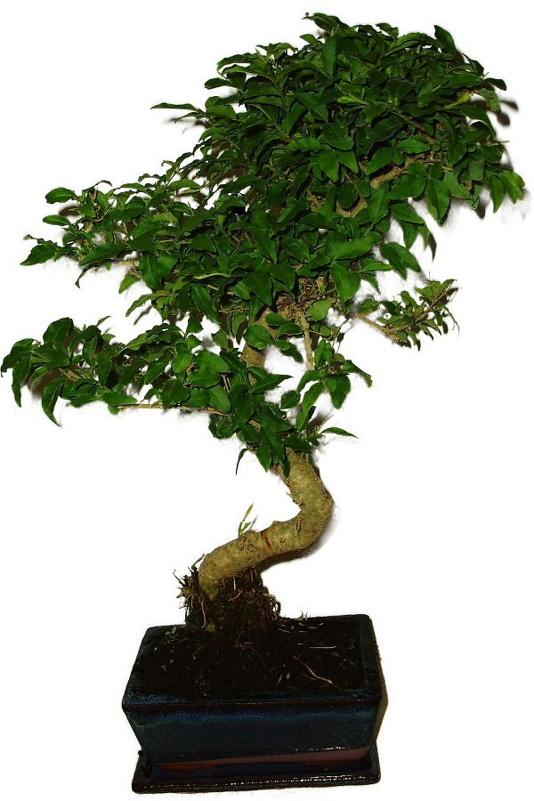 Bonsaj Ligustrum Chinensis, známá také jako ptačí zob čínský, je oblíbená pro své lesklé zelené listy a schopnost produkovat atraktivní bílé květy. Výška bonsaje 42 cm, stáří bonsaje 6 let.