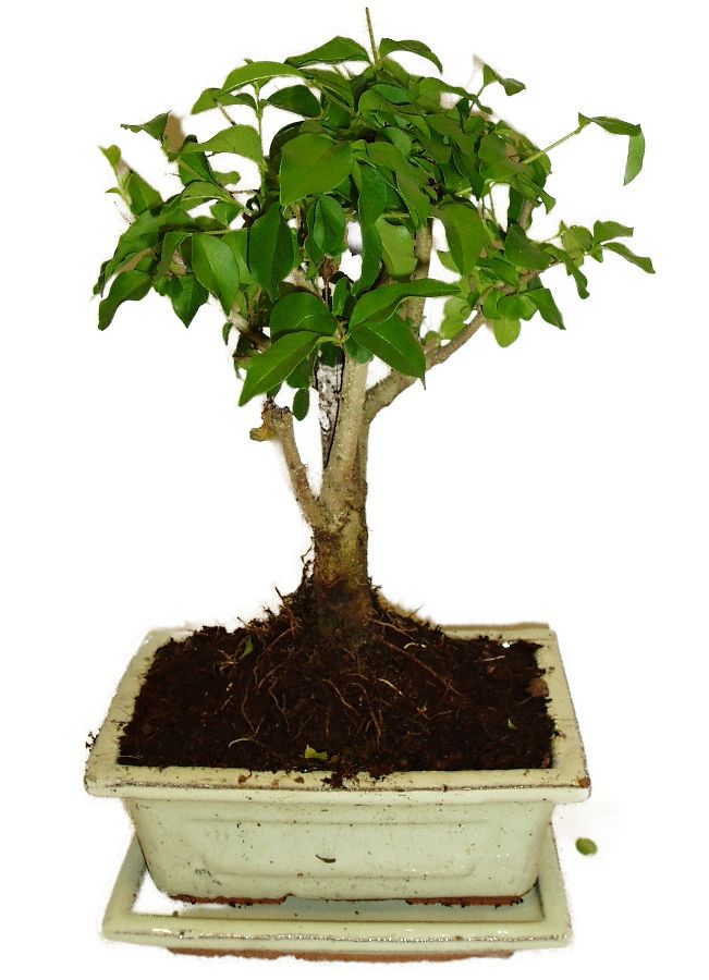 Bonsaj Ligustrum Chinensis, známá také jako ptačí zob čínský, je oblíbená pro své lesklé zelené listy a schopnost produkovat atraktivní bílé květy. Výška bonsaje 26 cm, stáří bonsaje 5 let.