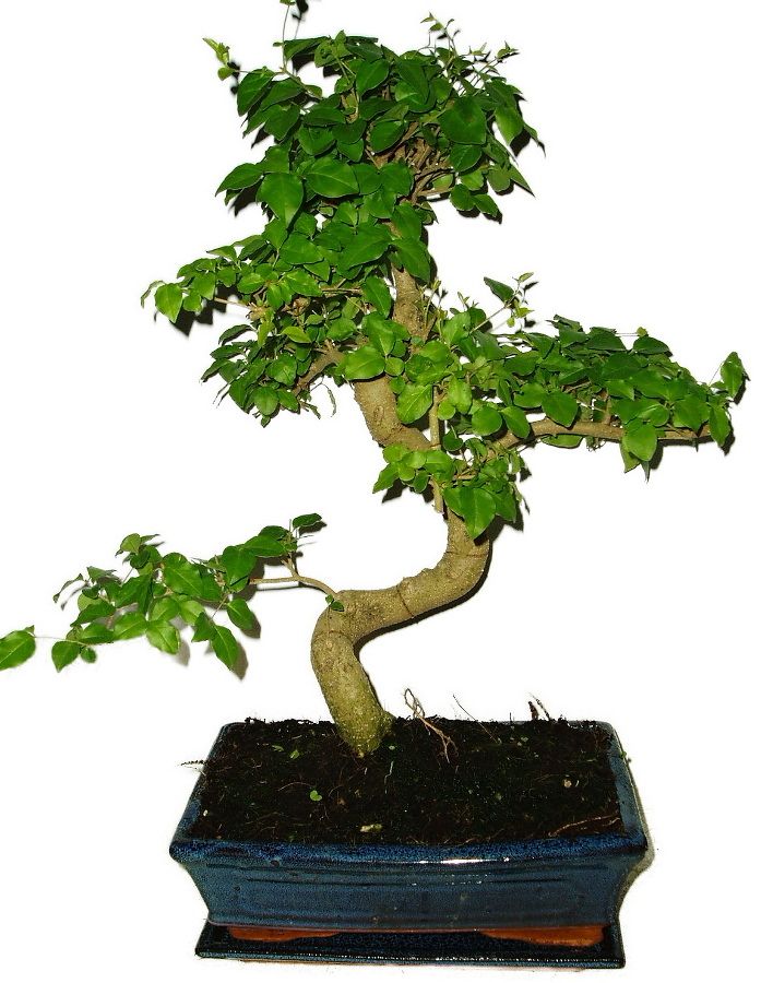 Bonsaj Ligustrum Chinensis, známá také jako ptačí zob čínský, je oblíbená pro své lesklé zelené listy a schopnost produkovat atraktivní bílé květy. Výška bonsaje 49 cm, výška, stáří bonsaje 10 let.