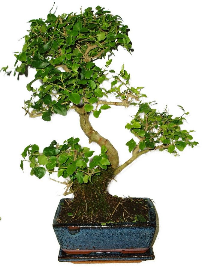Bonsaj Ligustrum Chinensis, známá také jako ptačí zob čínský, je oblíbená pro své lesklé zelené listy a schopnost produkovat atraktivní bílé květy. Výška bonsaje 39 cm, stáří bonsaje 6 let.