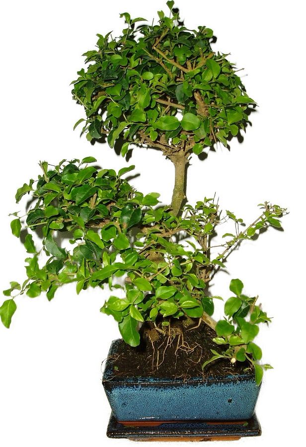 Bonsaj Ligustrum Chinensis, známá také jako ptačí zob čínský, je oblíbená pro své lesklé zelené listy a schopnost produkovat atraktivní bílé květy. Výška bonsaje 36 cm, stáří bonsaje 6 let.