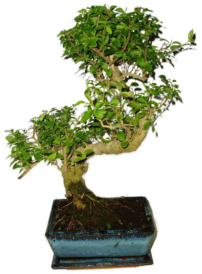 Bonsaj Ligustrum Chinensis, známá také jako ptačí zob čínský, je oblíbená pro své lesklé zelené listy a schopnost produkovat atraktivní bílé květy. Výška bonsaje 33 cm, stáří bonsaje 6 let.