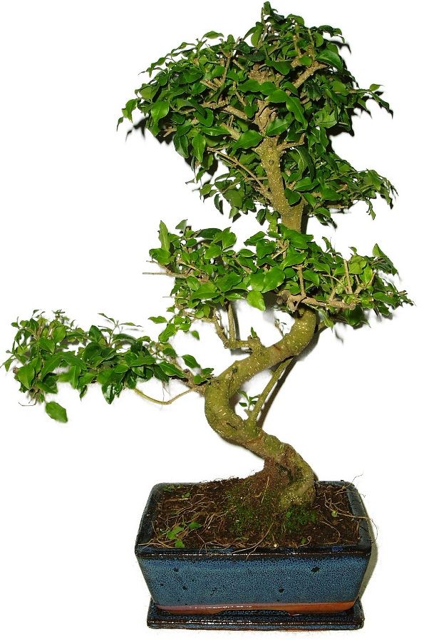 Bonsaj Ligustrum Chinensis, známá také jako ptačí zob čínský, je oblíbená pro své lesklé zelené listy a schopnost produkovat atraktivní bílé květy. Výška bonsaje 38 cm, stáří bonsaje 6 let.