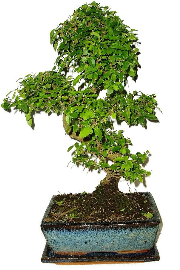 Bonsaj Ligustrum Chinensis, známá také jako ptačí zob čínský, je oblíbená pro své lesklé zelené listy a schopnost produkovat atraktivní bílé květy. Výška bonsaje 36 cm, stáří bonsaje 8 let.
