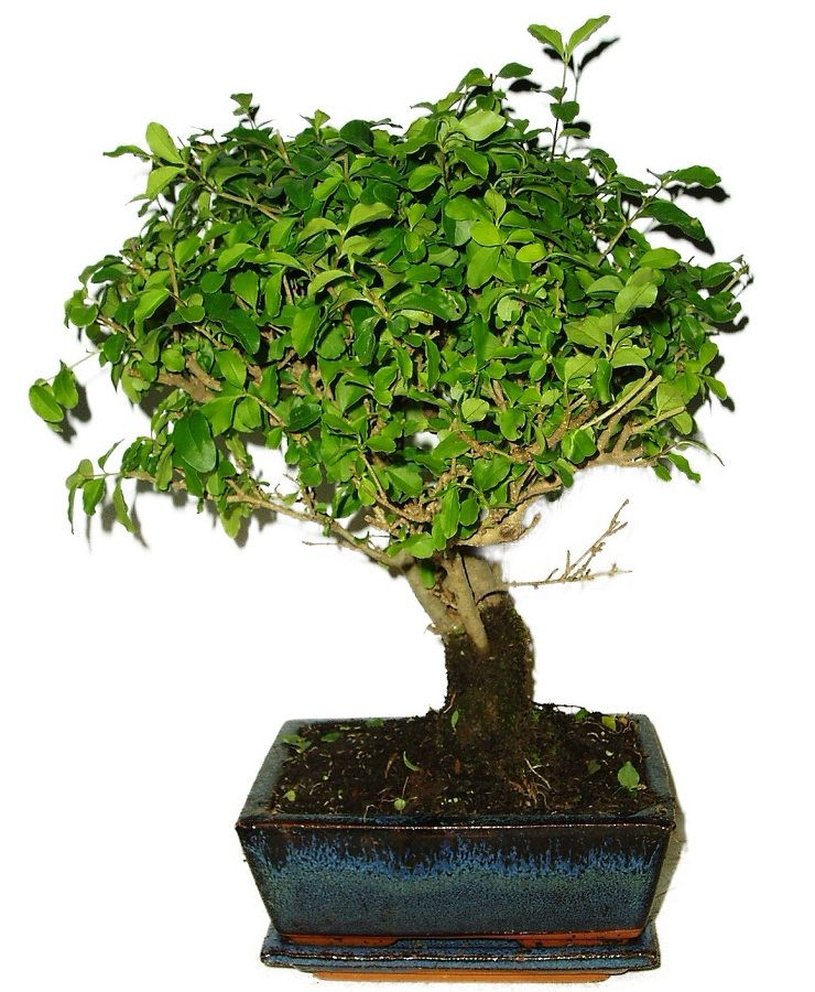 Bonsaj Ligustrum Chinensis, známá také jako ptačí zob čínský, je oblíbená pro své lesklé zelené listy a schopnost produkovat atraktivní bílé květy. Výška bonsaje 30 cm, stáří bonsaje 5 let.