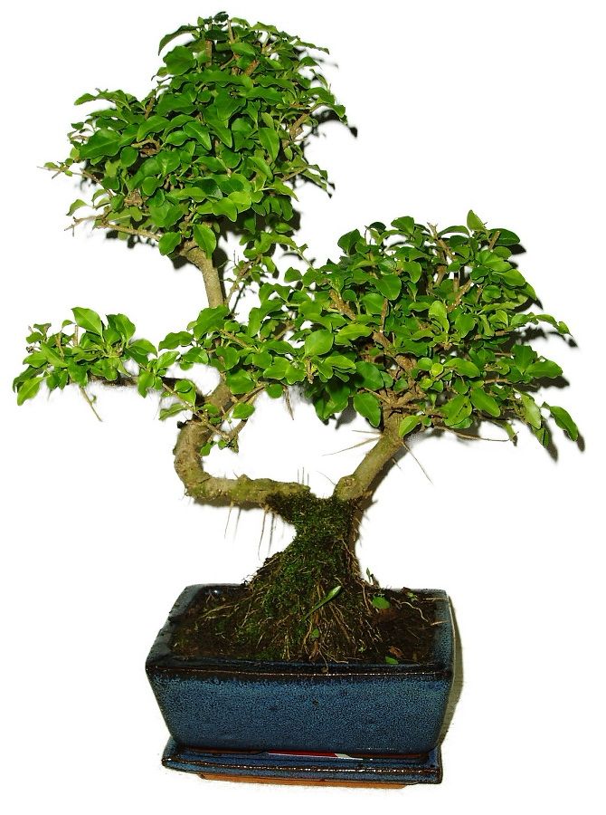 Bonsaj Ligustrum Chinensis, známá také jako ptačí zob čínský, je oblíbená pro své lesklé zelené listy a schopnost produkovat atraktivní bílé květy. Výška bonsaje 37 cm, stáří bonsaje 6 let.