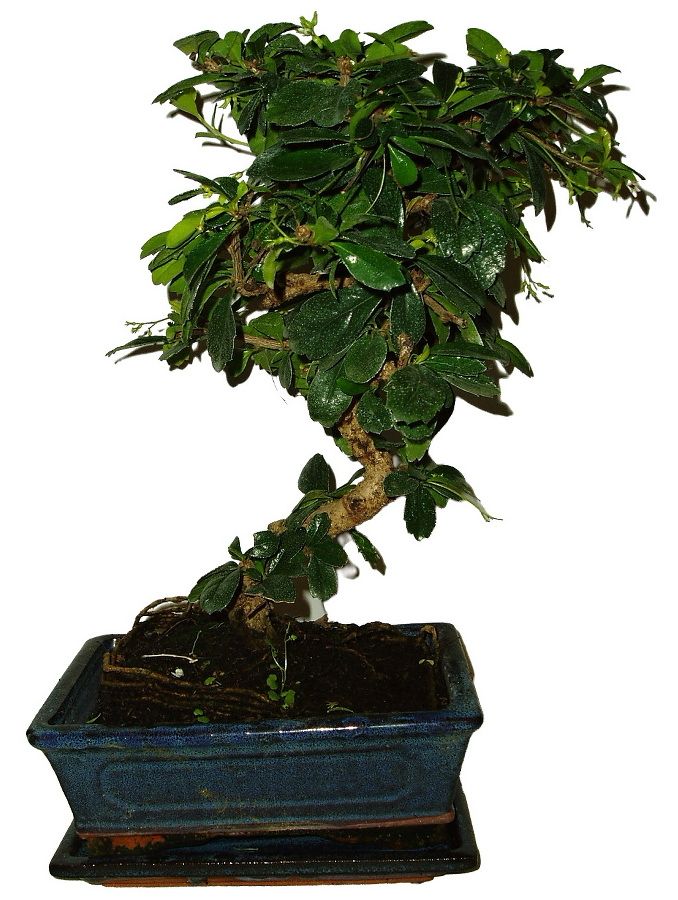 Velmi oblíbená bonsaje pro svoji nenáročnost, vzhled a hezké květy. Výborně tvarovatelná. Výška bonsaje 35 cm a stáří bonsaje 8 let.
