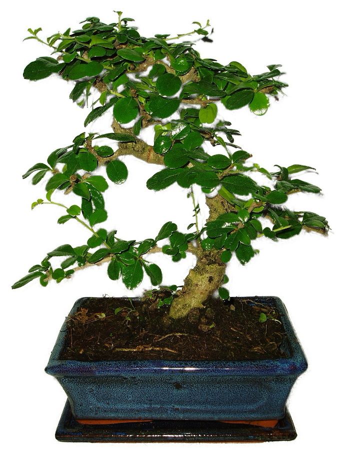 Velmi oblíbená bonsaje pro svoji nenáročnost, vzhled a hezké květy. Výborně tvarovatelná. Výška bonsaje 33 cm a stáří bonsaje 8 let.