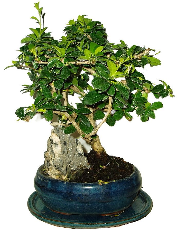 Velmi oblíbená bonsaje pro svoji nenáročnost, vzhled a hezké květy. Výborně tvarovatelná. Výška bonsaje 28 cm a stáří bonsaje 6 let.