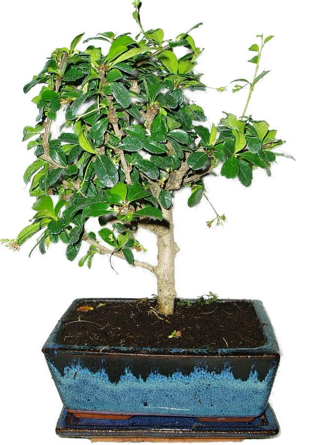 Velmi oblíbená bonsaje pro svoji nenáročnost, vzhled a hezké květy. Výborně tvarovatelná. Výška bonsaje 26 cm a stáří bonsaje 5 let.