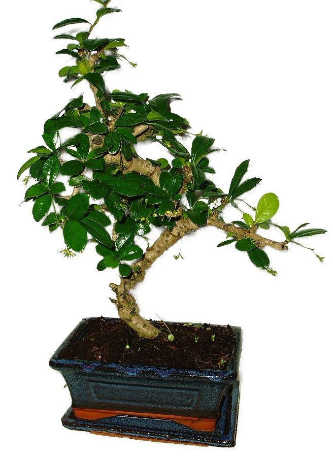 Velmi oblíbená bonsaje pro svoji nenáročnost, vzhled a hezké květy. Výborně tvarovatelná. Výška bonsaje 34 cm a stáří bonsaje 6 let.