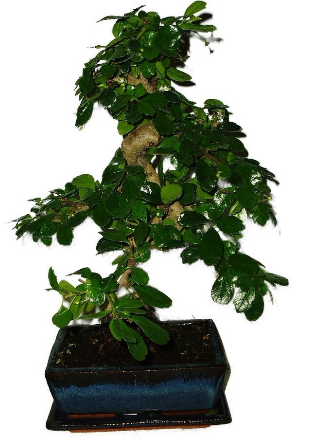 Velmi oblíbená bonsaje pro svoji nenáročnost, vzhled a hezké květy. Výborně tvarovatelná. Výška bonsaje 39 cm a stáří bonsaje 8 let.