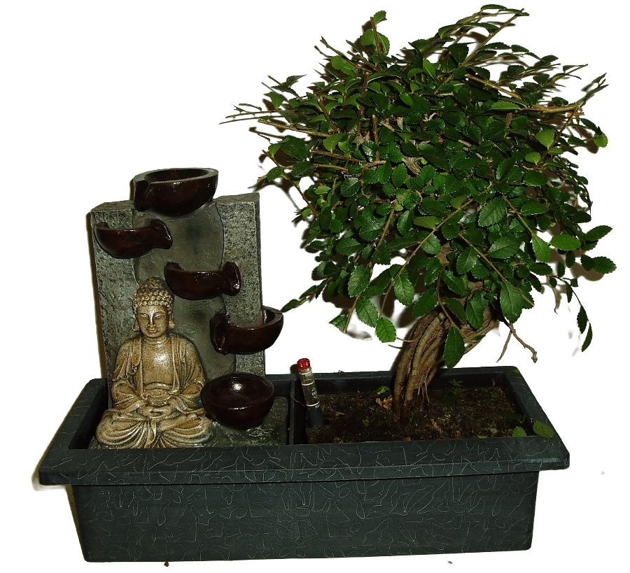 Zelkova 255 - pokojové bonsaje - fontána funkční součástí čerpadýlko