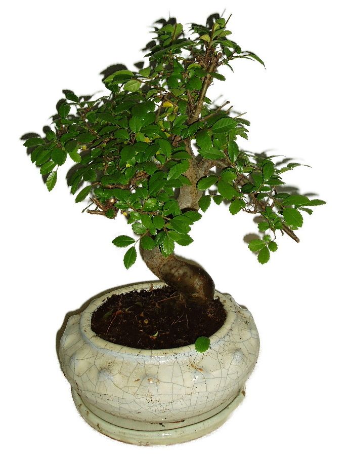 Zelkova jedna z nejoblíbenějších bonsají, jelikož je nenáročná, netrpí na škůdce, vydrží mnoho a velmi se podobá klasickému lesu. Výška pokojové bonsaje je 23 cm a stáří 3 roky.