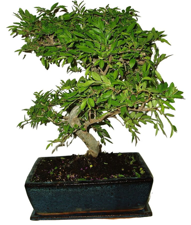 Zelkova jedna z nejoblíbenějších bonsají, jelikož je nenáročná, netrpí na škůdce, vydrží mnoho a velmi se podobá klasickému lesu. Výška pokojové bonsaje je 40 cm a stáří 10 let.