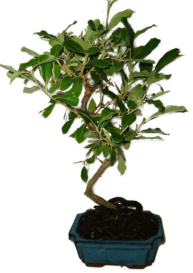 Výška bonsaje je 38 cm a stáří je 7 let. Hlošina pichlavá je stálezelený keř a patří mezi raritní bonsaje.