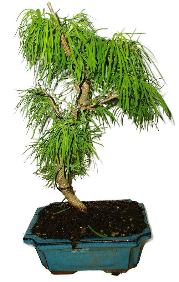Larixy, pseudolarixy apod., patří mezi nenáročné jehličnaté bonsaje. Vystačí jim občasná zálivka, chráníme před ostrým sluníčkem. Hnojíme jednou, nebo dvakrát do měsíce. Přesazujeme jednou za dva roky na jaře. Střiháme, aby se dodržel stromek a nebyl z bonsaje přerostlý keř s dlouhými výhonky. Velmi hezké a oblíbené bonsaje. Na zimu opadává.