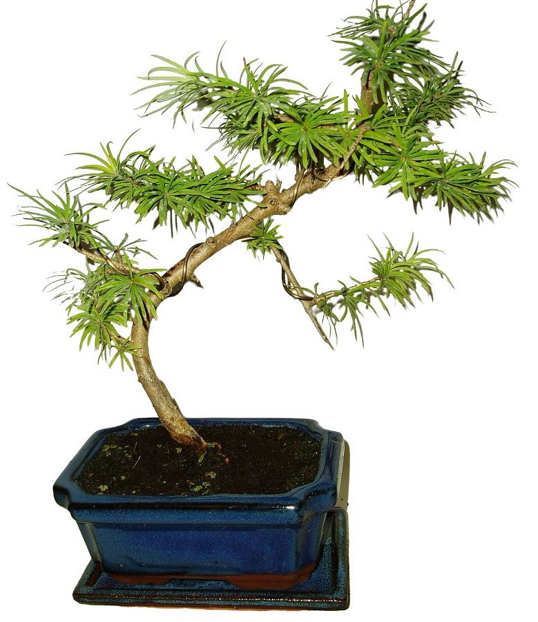 Larixy, pseudolarixy apod., patří mezi nenáročné jehličnaté bonsaje. Vystačí jim občasná zálivka, chráníme před ostrým sluníčkem. Hnojíme jednou, nebo dvakrát do měsíce. Přesazujeme jednou za dva roky na jaře. Střiháme, aby se dodržel stromek a nebyl z bonsaje přerostlý keř s dlouhými výhonky. Velmi hezké a oblíbené bonsaje. Na zimu opadává.