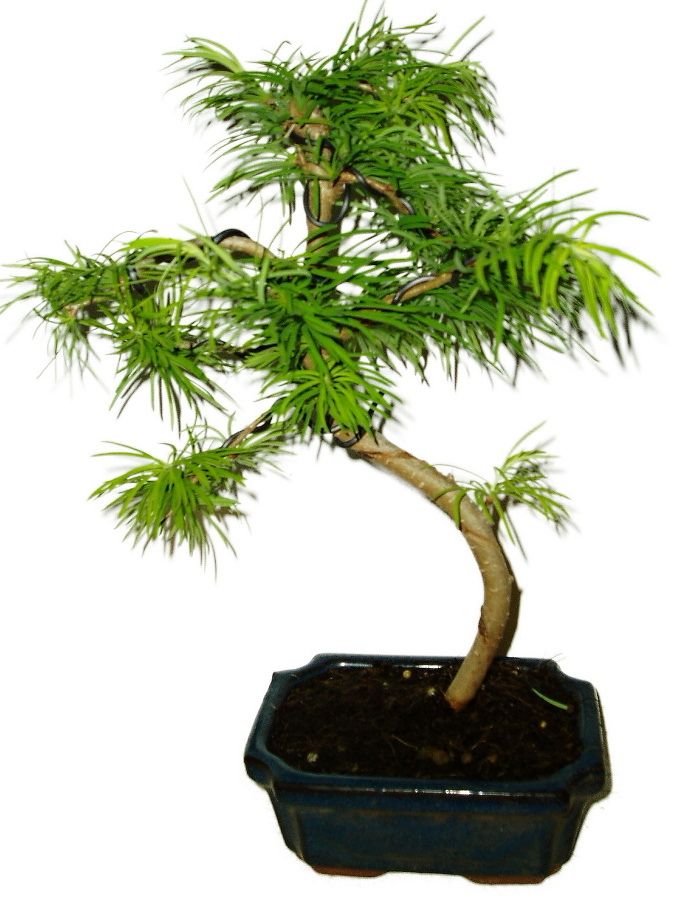 Larixy, pseudolarixy apod., patří mezi nenáročné jehličnaté bonsaje. Vystačí jim občasná zálivka, chráníme před ostrým sluníčkem. Hnojíme jednou, nebo dvakrát do měsíce. Přesazujeme jednou za dva roky na jaře. Střiháme, aby se dodržel stromek a nebyl z bonsaje přerostlý keř s dlouhými výhonky. Velmi hezké a oblíbené bonsaje. Na zimu opadává.