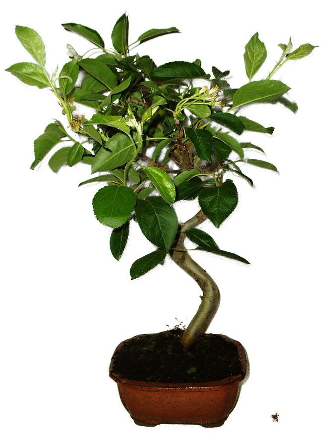 Malus - krásná třešňoplodá jabloň, ideální do všech zahrad, kde je život. Zahradu obohatí svým krásným květem a plodem. Plody jsou výrazně červené. Při nedostatečné zálivce svěsí listy. Hnojení dvakrát do měsíce. Jednoduše se tvarují nové výhonky, než zdřevnatí. Pokud máte rádi barvy a hezké zahrady originální, neváhejte. Pohled je vždy úchvatný na plodící bonsai.